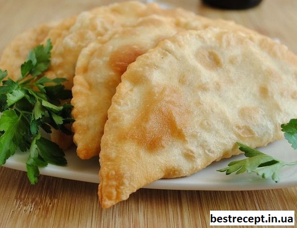 - Готові чебуреки складати на серветку стоячи швами догори.