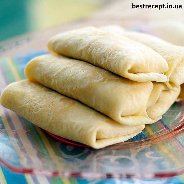 1. Всі інгредієнти для млинців збийте і замісіть тісто. Поставте в холодильник на годину, а потім обсмажте тонкі млинці на сковороді.