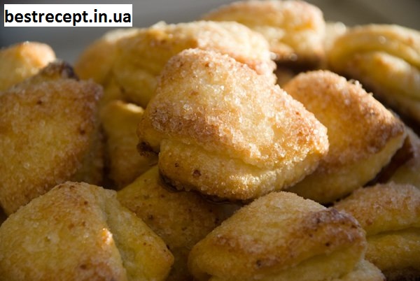 3. Печиво, що вийшло мокніть знову в цукор, а потім викладіть його на аркуш цукровою стороною вгору і випікайте до готовності.