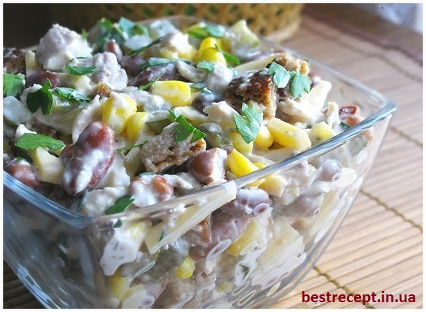 Інгредієнти: Відварене куряче філе – 300г., Квасоля (відварна або консервована) …