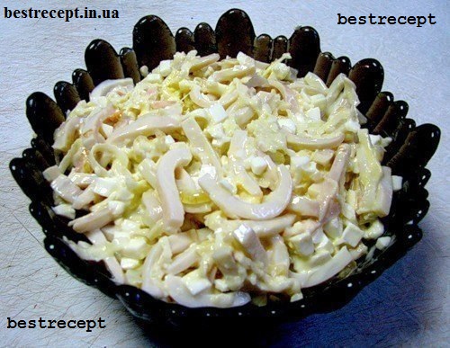 Інгредієнти: 2 кальмара, 350 г відвареного курячого філе, 1 велике …