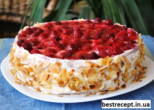 1. Торт із малиною (ожиною) і збитими вершками готувати так само, як торт із суницями і збитими вершками.